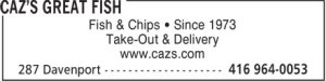 13.   Caz’s Great Fish (287 Davenport Road) is the one-and-only fish and chips spot in the hood. Though a bit of a trek from Yonge & Bloor, their homemade coleslaw, optional jerk batter and large pieces of halibut make it well-worth the trip.