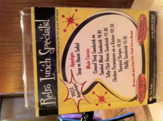 New to The Tulip are their Retro Lunch Specials, which offer-up the Soup of the Day or a House Salad with any of their classic sandwiches, including one heck of a Club House, for one low, low price.
