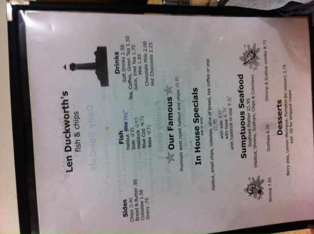 It’s the simplicity of the place that makes it worth repeat visits. The In House Special ($12.95) is as simple as it gets… a hefty serving of Halibut, Fresh-Cut Fries, Coleslaw, Bread & Butter and a Pop/Tea. Substitutions can be made on the type of Fish, but why mess with perfection?