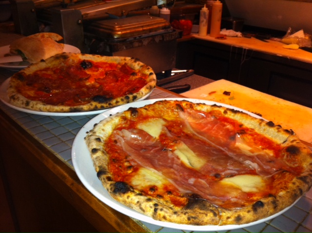 The chalkboard outside claims to serve “The Best Pizza in Town,” so we order 2 (as you do). There are 31 to choose from ranging in price from $10 to $17 (including a wide array of White Pizzas), so we’re glad our clients had eaten here before and could recommend a couple of beauties. We order The Burina, which is covered in Sausage, Pancetta, Garlic, Chili Flakes, Tomato Sauce and Mozzarella, and is served with a sidecar of 3 sauces varying in spice. We also try a new addition to the menu, The Trentina, which is liberally dressed with Speck, Arugula, Gorgonzola, Mushrooms and Tomato Sauce. I think it’s safe to say that our whole table was in agreement: Mangi & Bevi would give any pizzeria in town a run for its money in terms of being the city’s best.