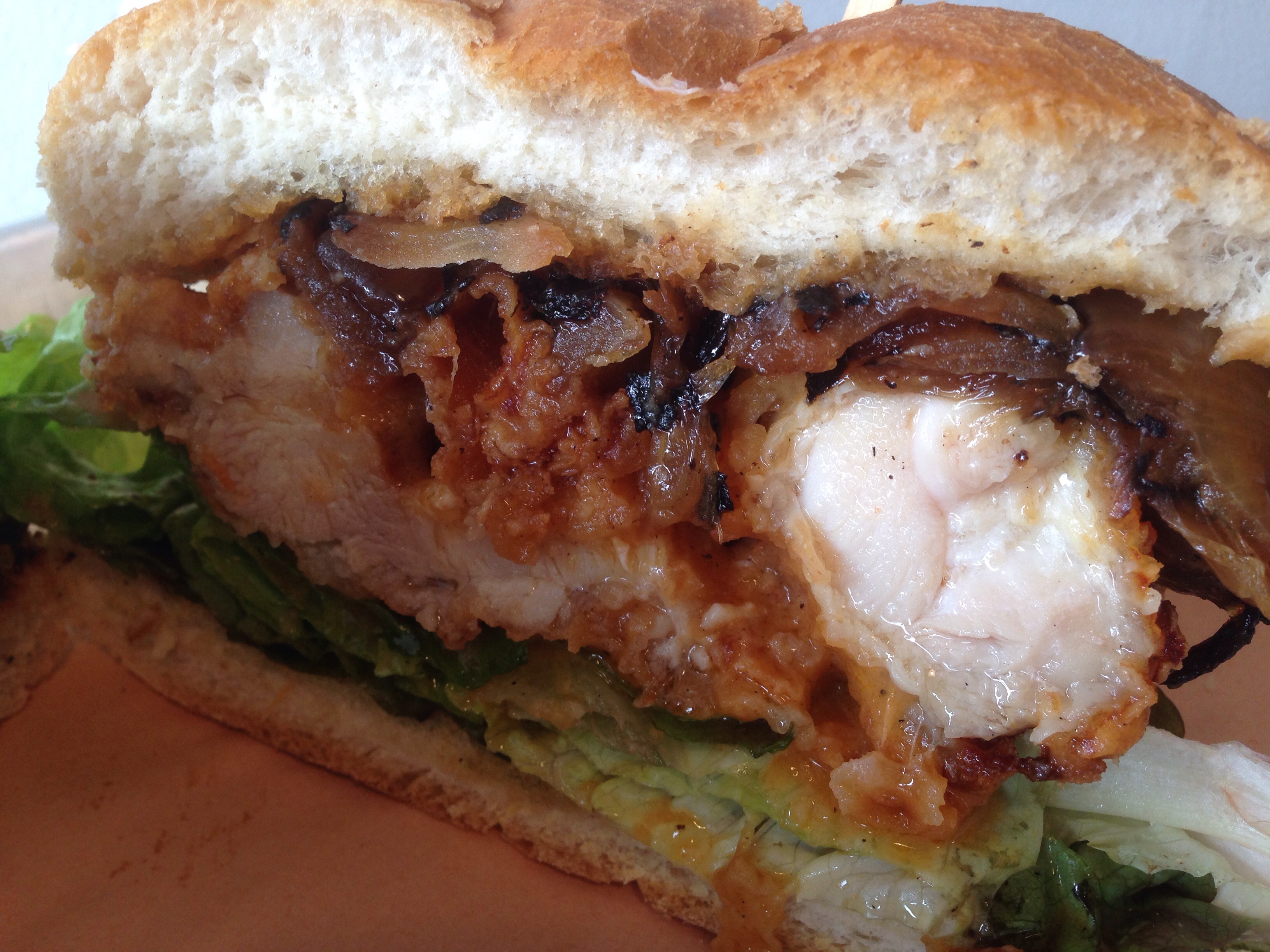 We order-up a couple of sandwiches, both deep-fried. The Crispy Chicken ($9) is a generous portion of southern fried thigh meat, lathered in homemade Piri Piri Sauce and then absolutely smothered in fried onions. Their Pork Schnitzel ($10) is currently my favoutite thing on the menu… in part because of its dill/caper/pickle grabiche; in part because of the bed of spicy collard greens. This sandwich truly is a thing of beauty. We both agreed that one of the more memorable surprises was that the buns did not become a soggy, inedible mess. Even the leftovers held up (though they didn’t make it home before my stomach intervened).