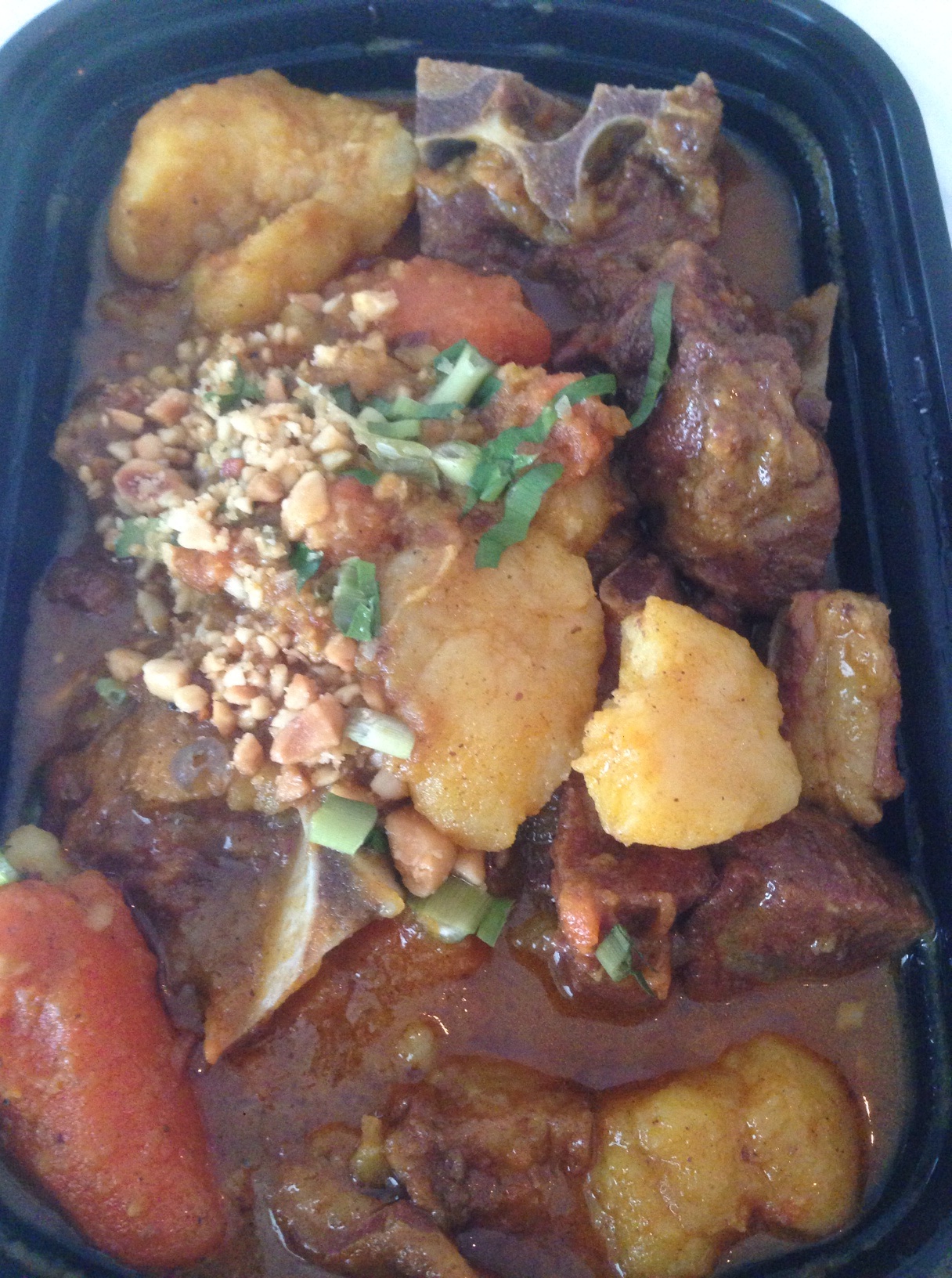 Thinking about something for sharing? BBQ Kalbi Ribs ($9.50) are tossed in a sticky sesame glaze; a great starter for the table. Their Green Mango Salad ($7.75) is spicy and sweet and holds up well the next day without getting soggy. The menu also offers a number of Curry and Rice dishes that lean a little more towards Thai. The Basil Chicken/ Beef ($11.95) is enough for 2 people and comes with either a sidecar of rice or tossed in glass noodles. Green curries are available, loaded with veggies and your choice of protein. The show-stopper for me, however, has got to be their Goat Curry ($10.50). Now I am a purveyor of curried goat, ordering it regularly at various establishments around town. Little Coxwell’s version is right up there, presented as an enormous stew of bone-in goat, potato & root vegetables. Definitely worth a try.