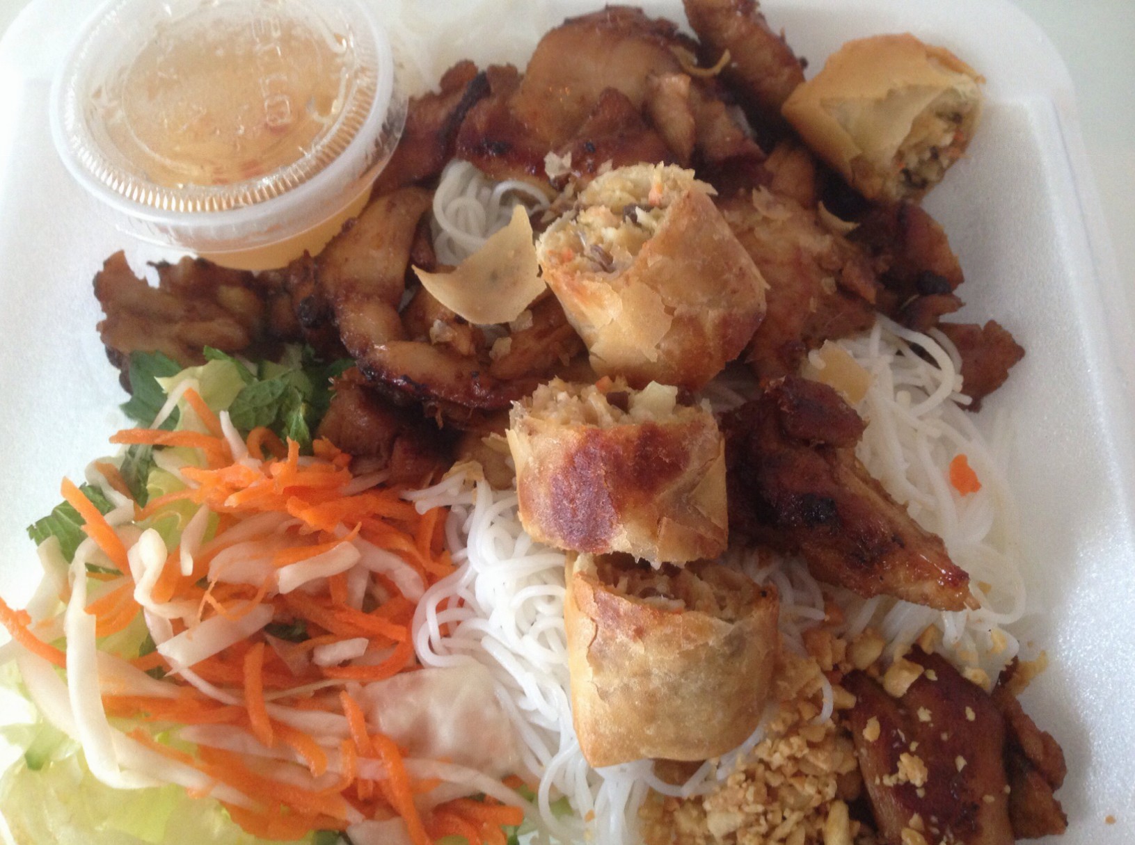 Rare Beef Pho is my favorite thing on any Vietnamese menu, and Little Coxwell offers-up an extremely generous bowl (in both the size and flavor department) for $8.75. I find Pho never travels well, so I’ll only order it when I dine in… which is regularly. My wife will almost always get the Chicken Bun (vermicelli). It comes in a combo, a deal at $8.50, complete with a spring roll and salad.