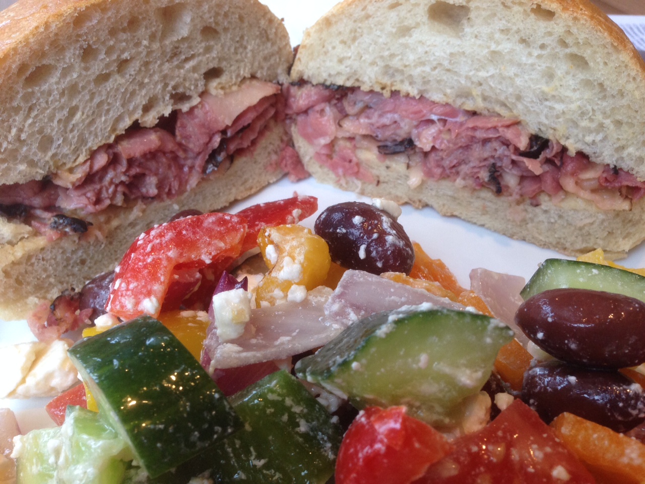 There are about a dozen sandwiches to choose from on the big board. Ordering takes place on a little paper slip. You pick your meat, cheese, bread and toppings; they pile them high. Sides consist of the soup of the day or a variety of fresh salads (the Village Greek and Red-skinned Potato stand out). There is also a daily hot plate special that ranges anywhere from Pierogis to Stews.