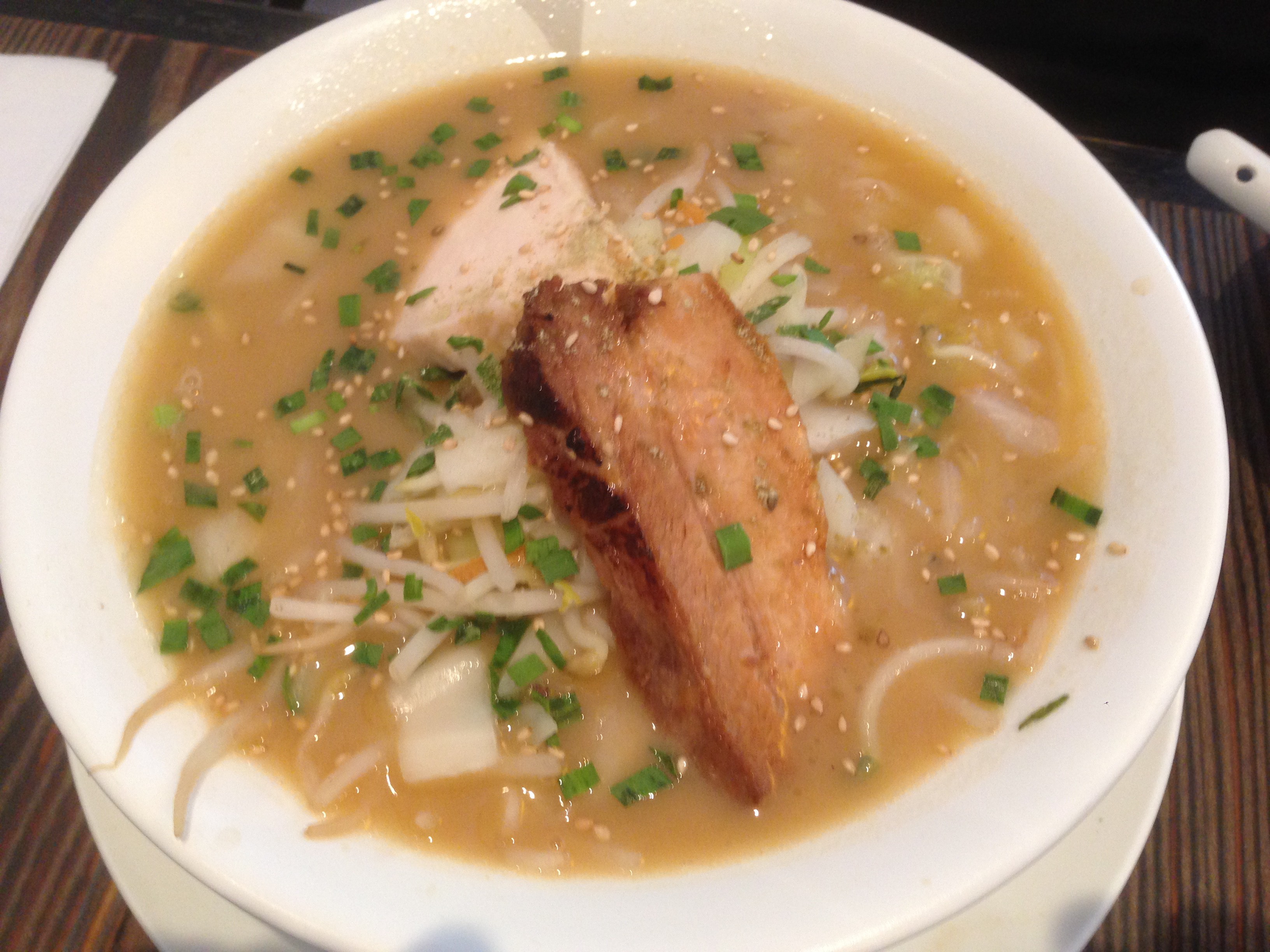 As for the soups, RYUS sets itself apart with their triple-soup ramen: a special blend of pork, chicken & vegetable stock. Their Miso Ramen has an extremely thick broth (thanks to the addition of all the white miso) and is topped with sliced Pork & Chicken. This is one hearty bowl; not for the faint of stomach. If you’re looking for something a bit lighter, be sure to try the dipping noodles (Tsukemen). All the noodles, sliced meats and veggies are served dry with the broth on the side for dipping. Good stuff!