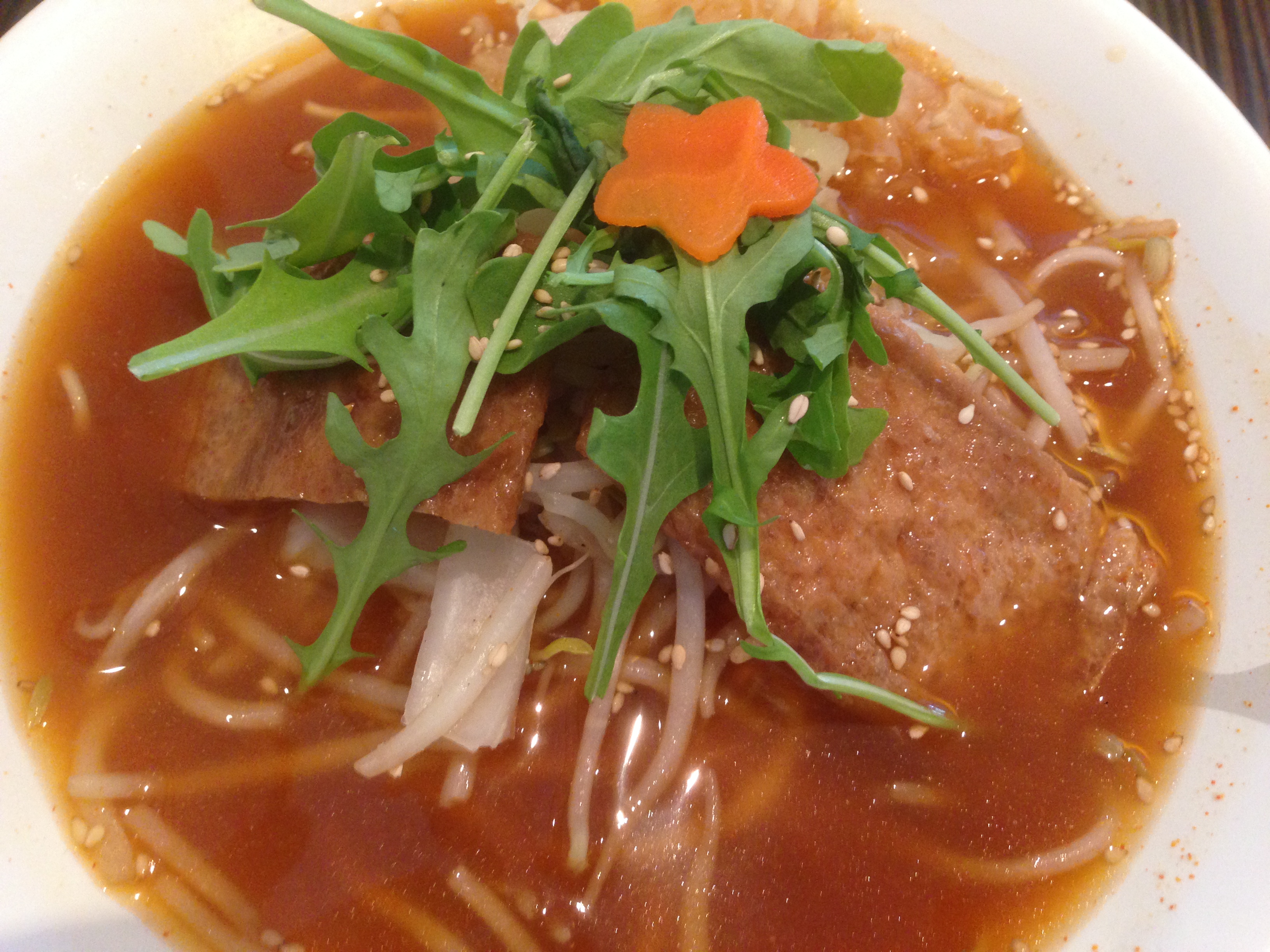 There are a number of veggie options available as well. I will often go for the Vegetable Shoya, especially after finishing my Curry Beef Bowl. The Veggie Shoya is a clear, light broth (I always add loads of their homemade chili oil ~ as pictured below) made from kombu, shiitake mushroom, ginger and garlic. Topped with carrot, nappa & green cabbage, bean sprouts, sesame, deep-fried tofu and arugula, this dish is an extremely filling bowl of veggie goodness.