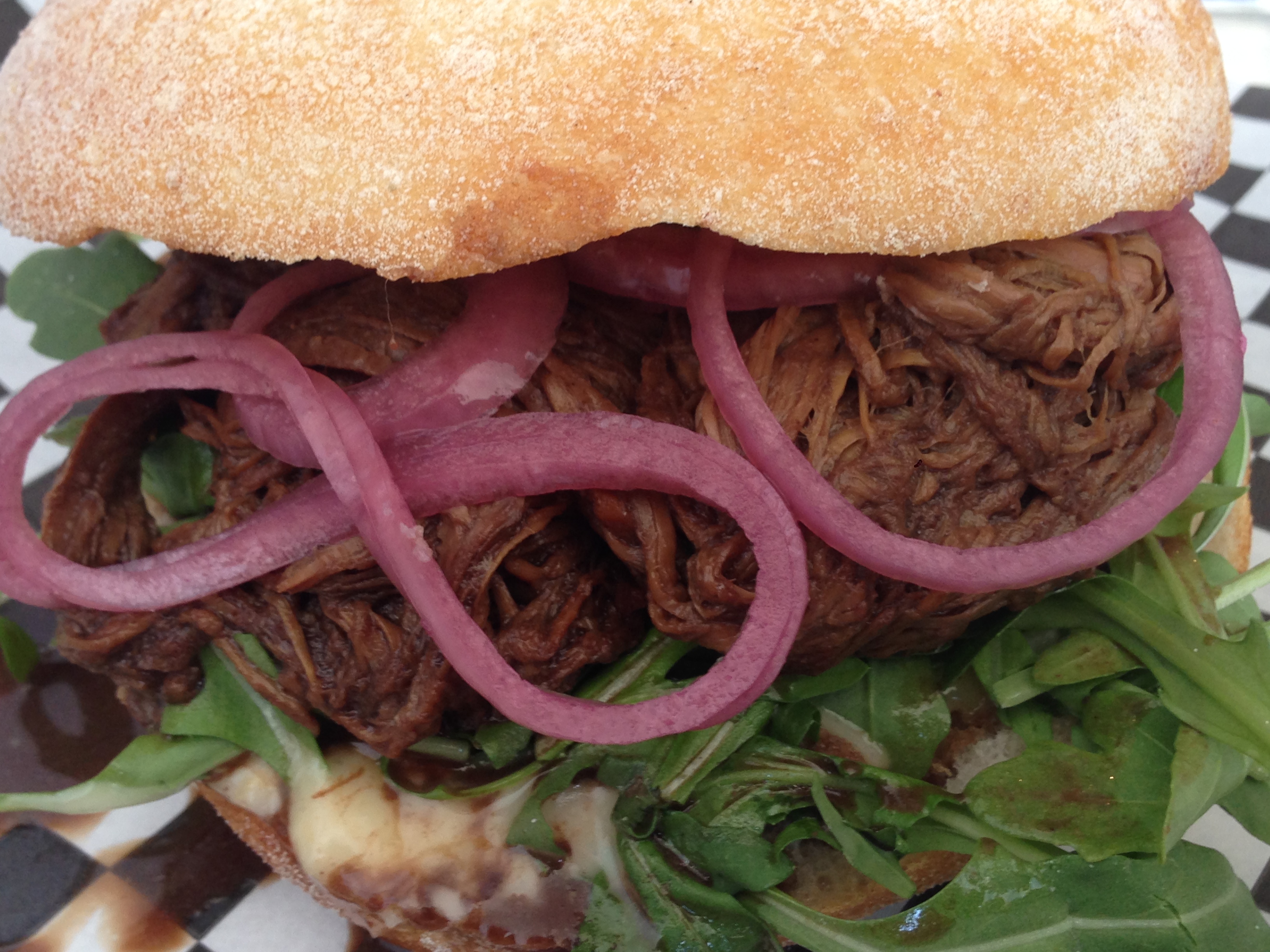 Chicken sandwiches comes two ways: fried & grilled (both $9.50). Their Buttermilk Fried Chicken comes loaded with roasted poblano coleslaw, chipotle honey drizzle and garlic aioli. The Grilled Piri Piri is topped with bacon, avocado, tomato, arugula and onion jam. As for the other white meat, the Porcetta Sandwich ($9) is doused in salsa verde and grainy dijon, and finished with Parmesan cheese.
