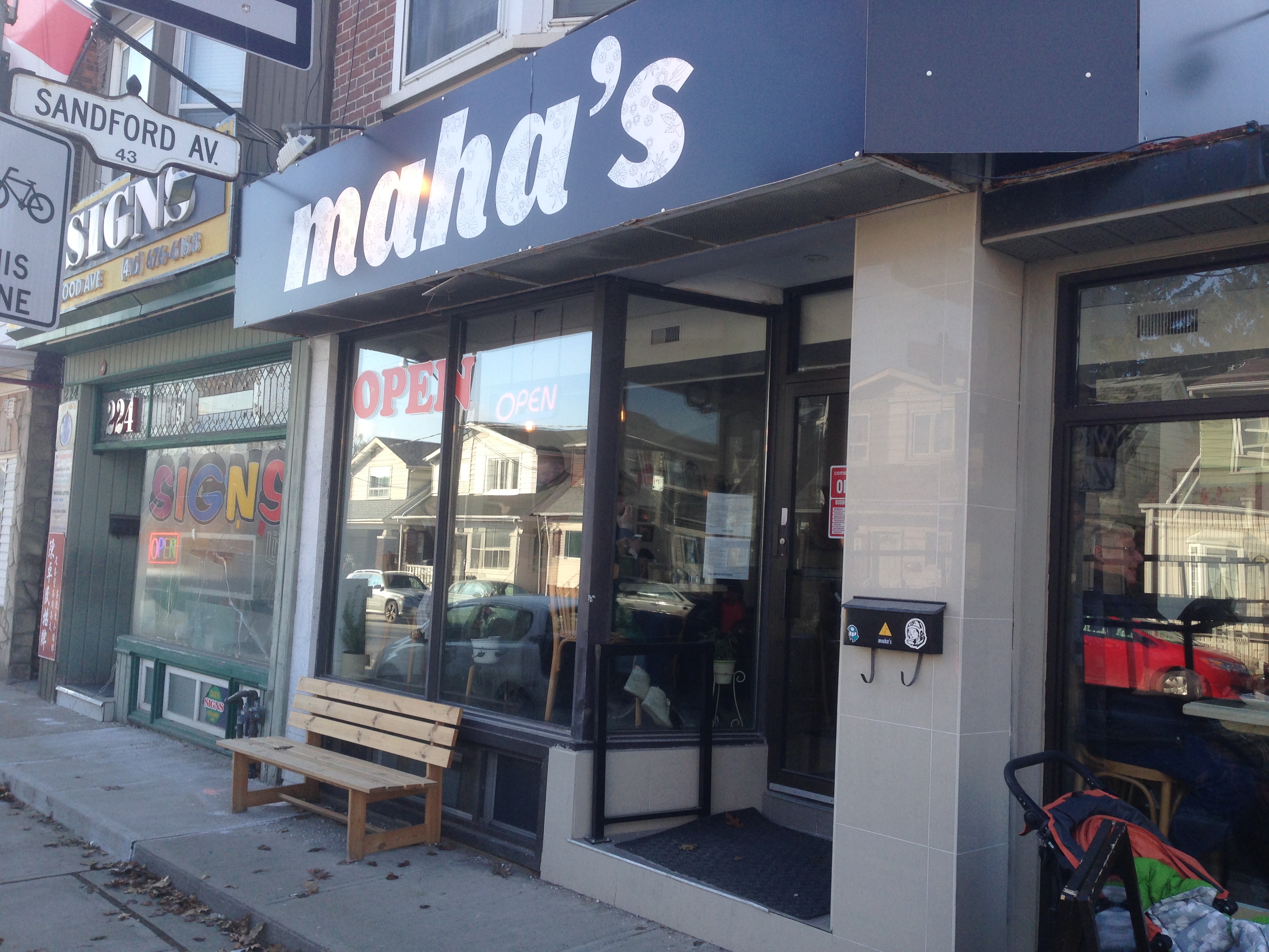 Maha’s is a happening Egyptian brunch spot on Greenwood Ave, just a quick walk from both the Gerrard India Bazarr and Leslieville. Maha Barsoom opened her eponymous cafe in late 2014 and, with the help of her kids Monika and Mark, has been filling the tables with aplomb ever since. It’s easy to see why there is often an hour-long queue for weekend brunch. Luckily Maha’s isn’t far from work, so my colleagues and I tend to drop in during the week right after the lunch rush.