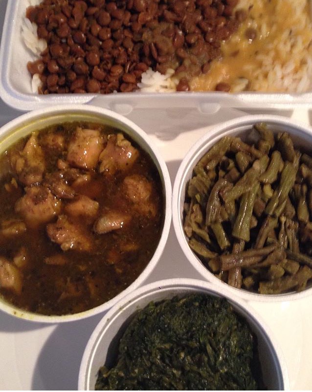 One of the biggest reasons I keep coming back are the huge, fresh roti shells (often made to order) that you can pack full of veggies. Their vegetable menu is really quite extensive. Pick from Chana, Pumpkin, Caralie (Bitter Melon), Eggplant, Mango Achar (Masala), Curried Saime (Snap Peas), Long Beans, Potato, Lentils, Dhal or Spinach. If you want to try a bit of everything, I recommend their Ital Roti ($8.99).