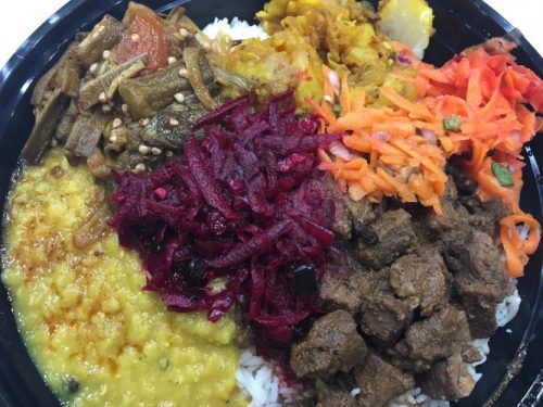 For me, their pièce de résistance is the Thali lunch combo. It’s an enormous serving of food (especially if you crushed some Short Eats beforehand). Start by choosing your meat (lamb, chicken or squid) alongside 3 well-spiced vegetable dishes. If you’re vegetarian, choose 4 veggie dishes atop perfect basmati rice for less than $10. Everything gets topped off with a delicious beet & carrot salad that adds just the right amount of acidity to tie everything together. Delicious lunch plate.