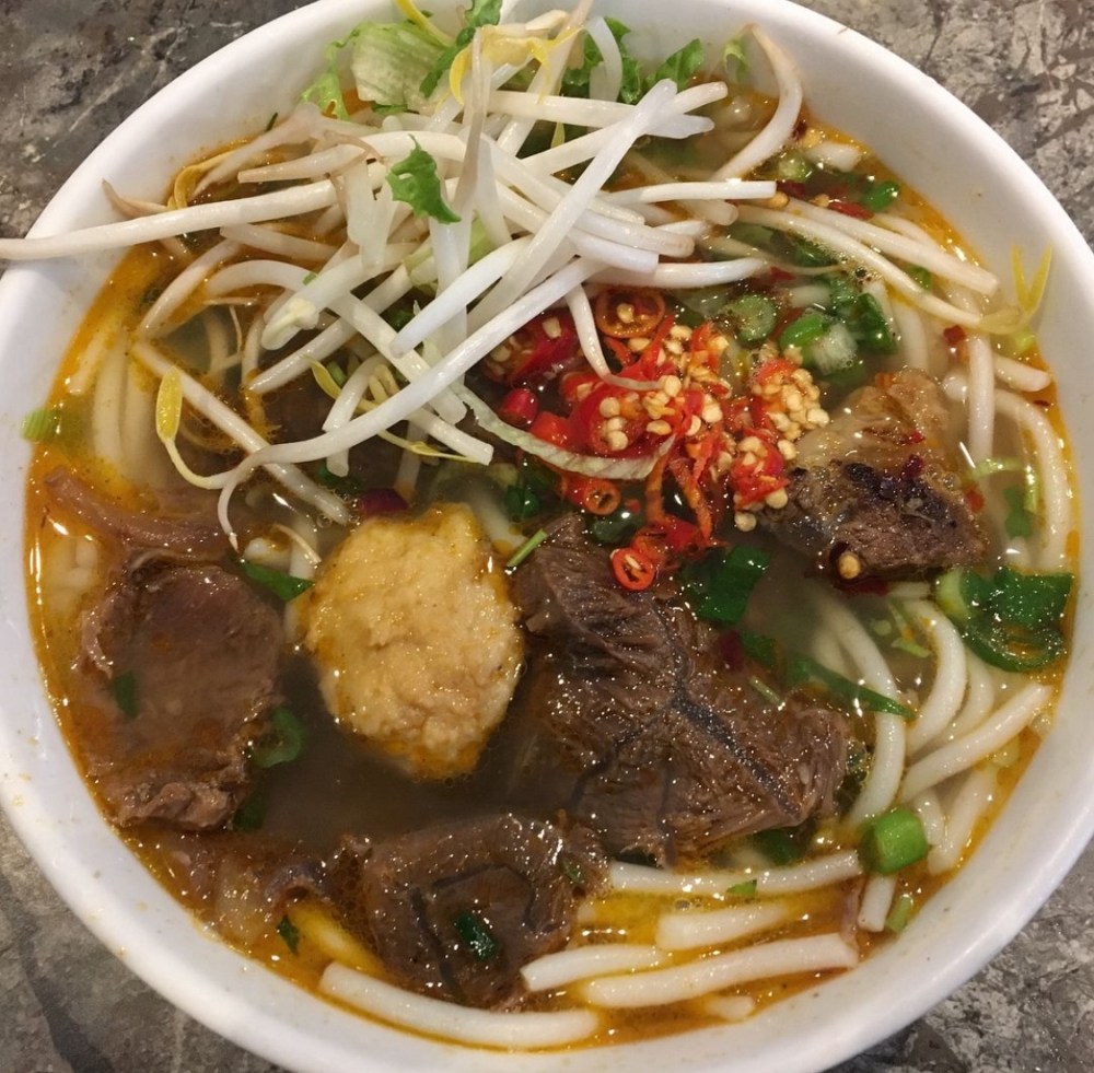 The Hue Noodle Soup (below) is heavy on the brisket, served with wider, spaghetti-like noodles. This registers a little higher on the spice scale (if that’s your thing).