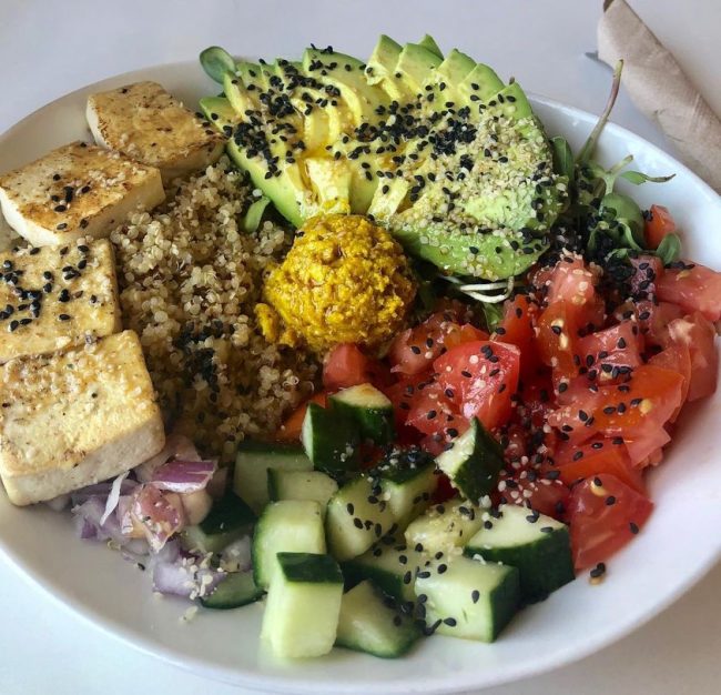 #MeatlessMonday never looked (or tasted) so good with this Hercules Bowl from Thrive Organic (3473 Lake Shore Blvd W). Almond Hummus, avocado, grilled tofu, diced veggies and all the crunchy seeds & sprouts. Available for curbside pickup in #Etobicoke