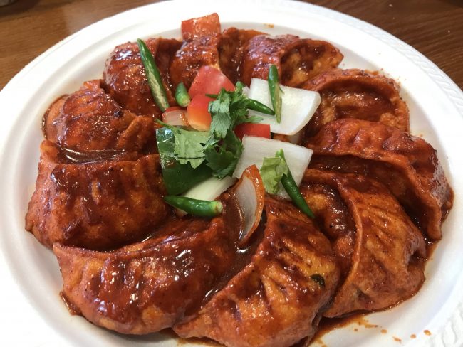 - We’re told that Fried Chilli Chicken Momos are, by far, the most popular item on the menu. They come fully submerged in a nuclear red chilli gravy. Crunchy, spicy, soupy, cheap, delicious. What’s not to like?
