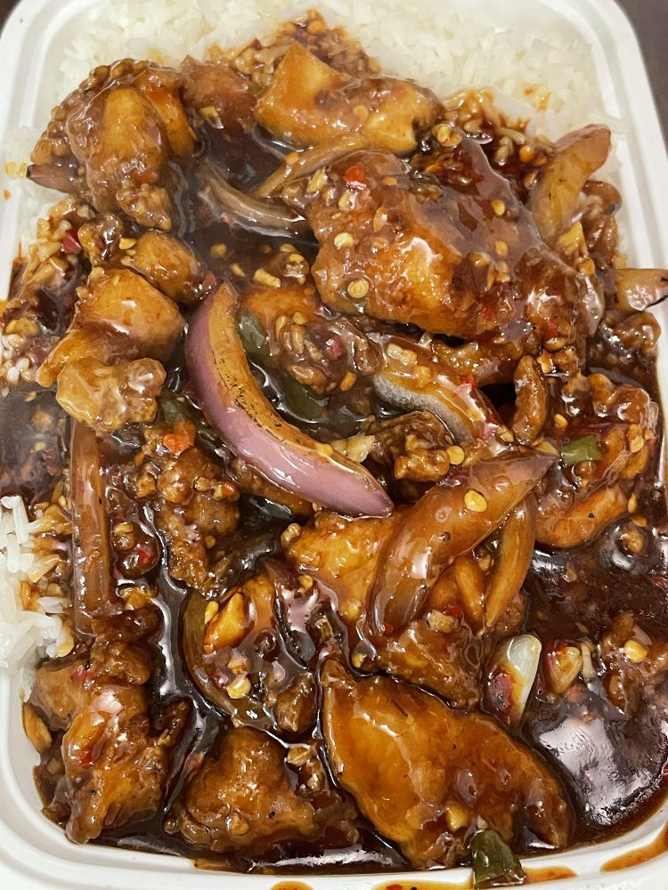 All stirfrys are available with rice or as larger portion a la carte, and they’ll gladly spice things to-order for you. Tomato & Beef is another one of our faves!