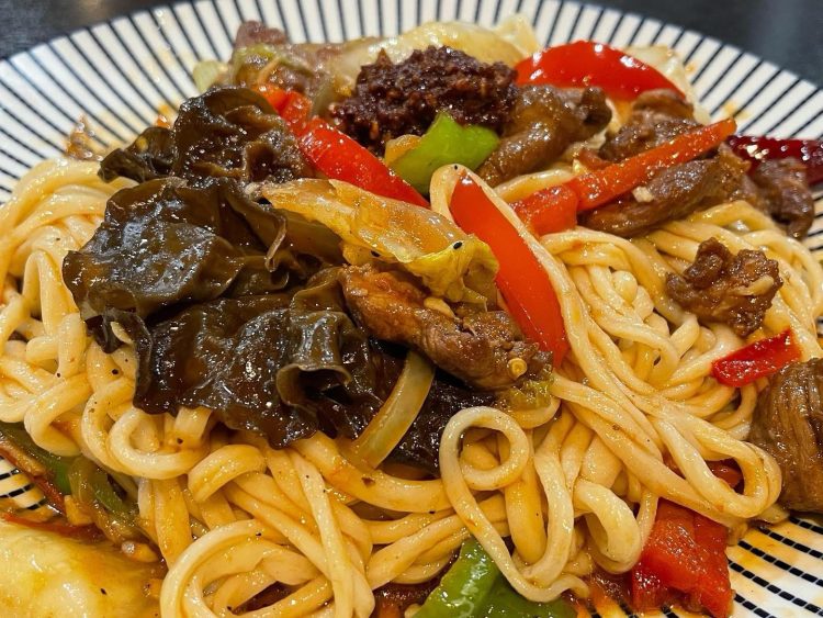 To round out the lamb feast, we always order Laghman for the table. Often considered the Uyghur’s national dish, hand-pulled noodles are tossed with cumin lamb, peppers, chillies and wood-ear mushrooms. Eaten family-style, the gravy packs a punch and really sticks to the starchy noodles. Great dish!