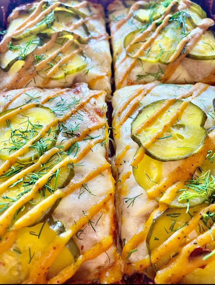 A personal Detroit-style deep dish where every slice is a corner (which is clearly an intentional design choice rather than a gimmick). Sourdough crust that’s as light as air. Creamy roasted-garlic sauce. Mozzarella and Swiss. Dill pickles layered admirably and finished with fresh dill and a Carolina Gold mustard drizzle. Tangy, rich, faintly absurd, and completely logical once you’re eating it.